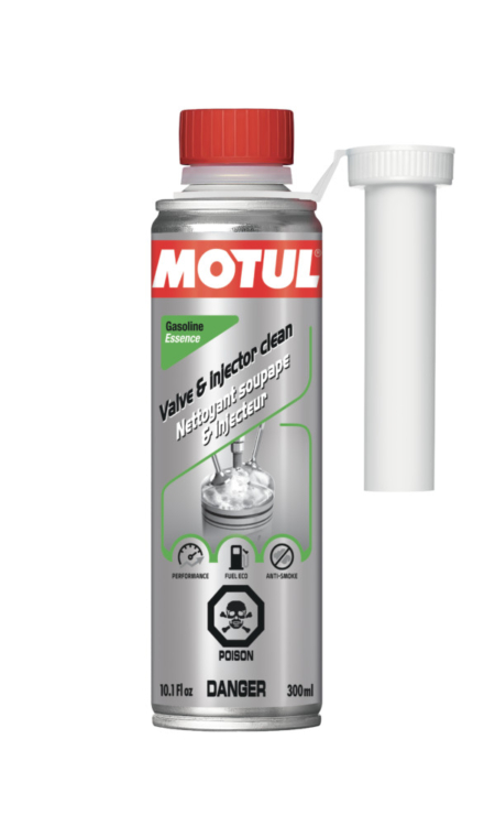 MOTUL VALVE & INJECTOR CLEANER GASOLINE is a curative additive designed to be used in all types of gasoline engine with injection or carburetors, naturally aspirated or turbocharged with or without catalytic converter, using leaded or unleaded gasolines and biofuels.